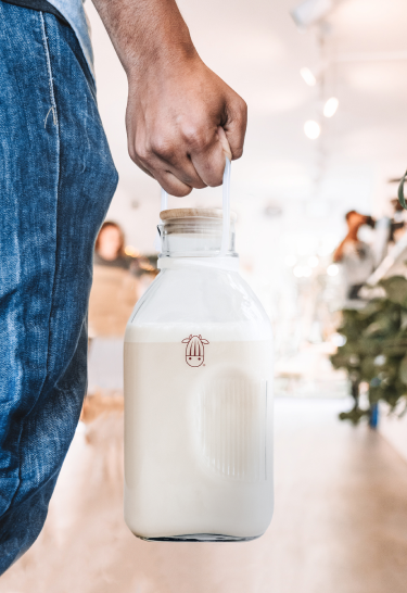 Annually, close to 70% of plastic cartons go to landfills, or worse, end up in the ocean. An estimated 8 million metric tons of plastic ends up in the ocean each year. From manufacturing to transport to disposal, store-bought milk is one-directional, linear consumption.