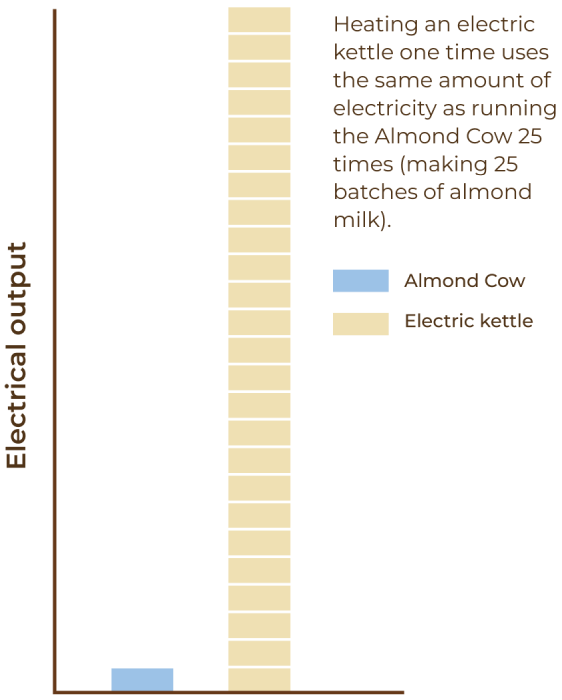 The production of an Almond Cow generates roughly the same amount of CO2 as using 2.7 gallons of gas. When compared against the average of buying two cartons of store-bought unsweetened almond milk a week, the average user can offset the carbon emissions of the production and transportation of an Almond Cow in just 2.25 months!