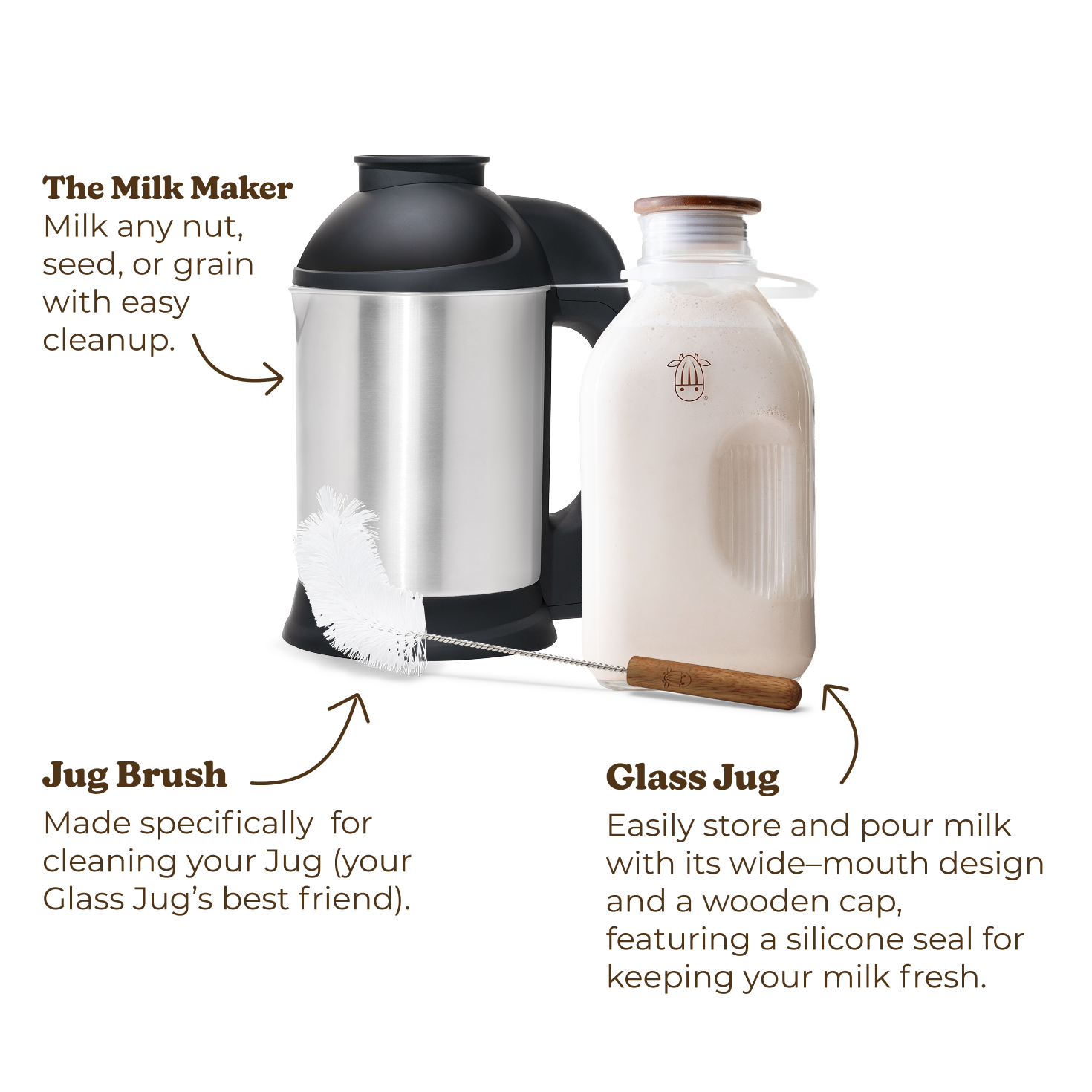 Features a 100% stainless steel milk zone with plastic free milk contact areas, plus a reusable glassware to help reduce waste while making plant milk at home.
