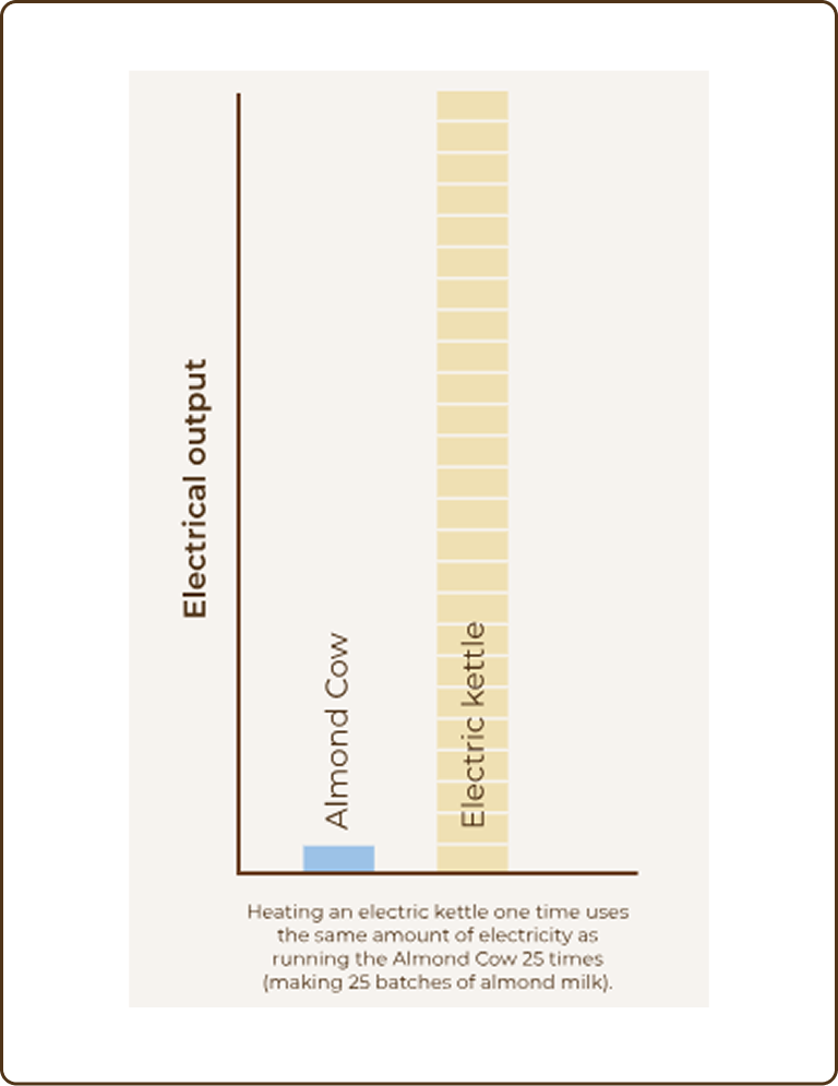 The production of an Almond Cow generates roughly the same amount of CO2 as using 2.7 gallons of gas. Compared to buying two cartons of store-bought unsweetened almond milk a week, the average user can offset the carbon emissions of production and transportation in just 2.25 months.