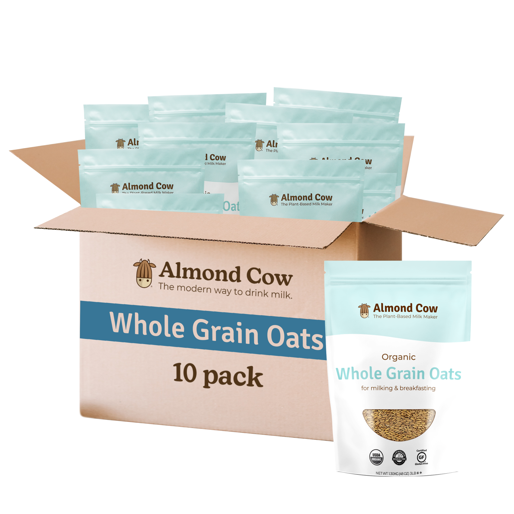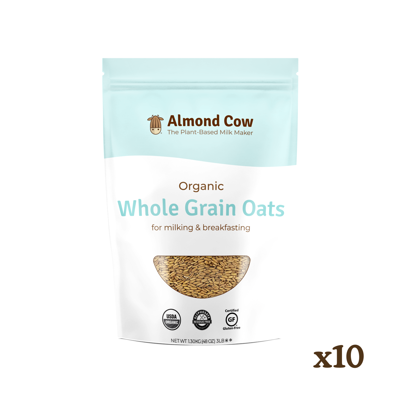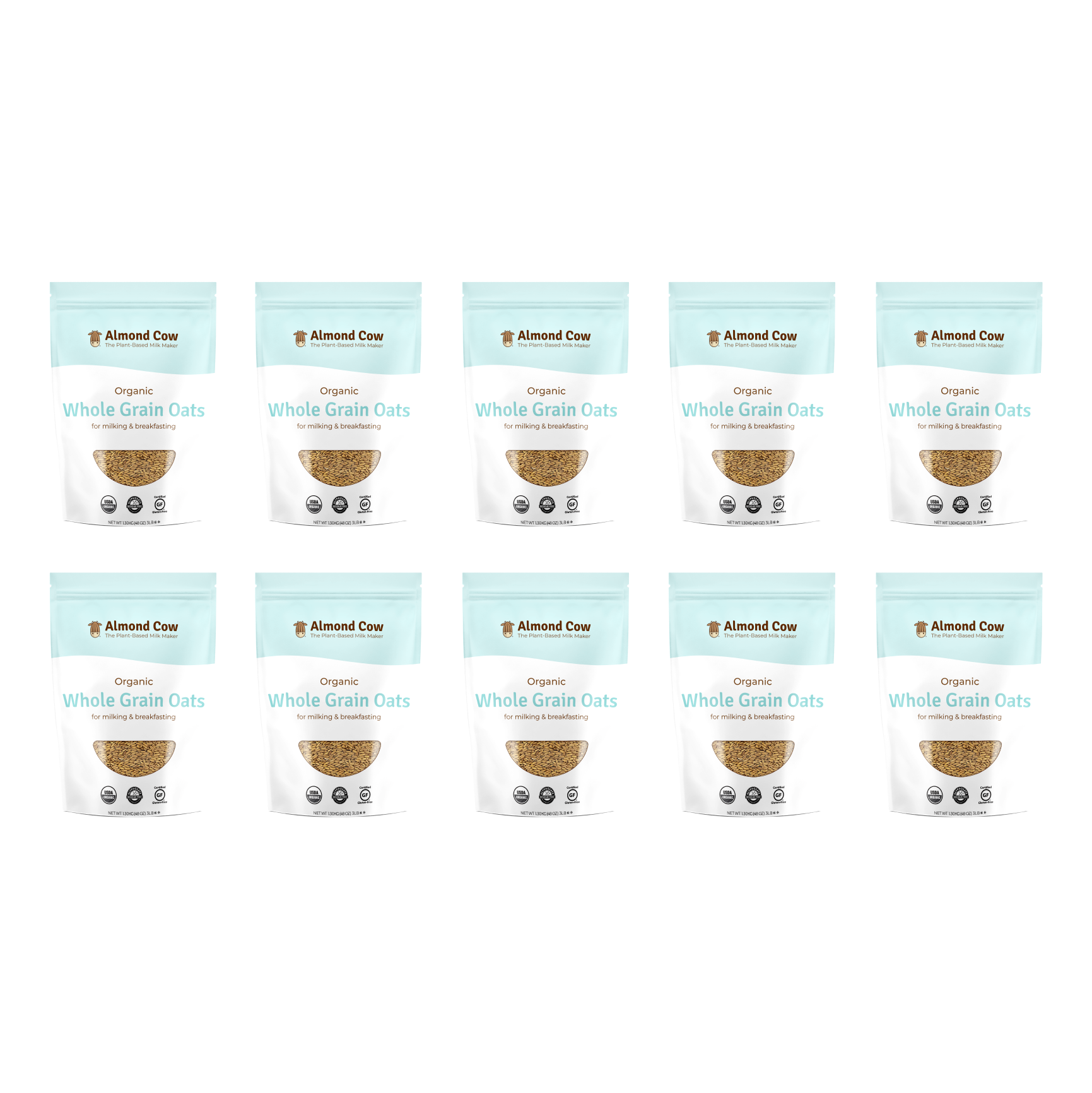 10 bags of our Organic Whole Grain Oats - the best types of oats to make your own creamy, delicious oat milk. They’re completely unprocessed, which will help you avoid that slimy oat milk consistency that can come from processed oats.