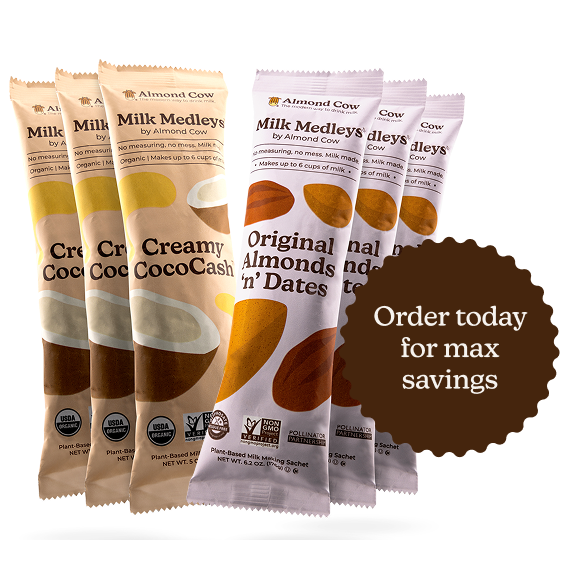 Our make-in-a-minute medleys contain pre-measured ingredients to easily make delicious plant-based milk created with you and the planet in mind.